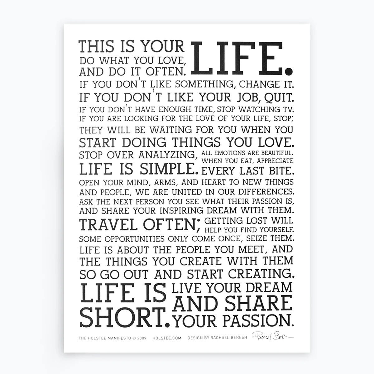 Holstee Manifesto Poster. A reminder to celebrate the simplest aspects of life.